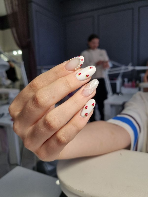 Мастер выполнила все мои просьбы, то есть сделала дизайн и рисунок на ногтях, который я хотела. То есть у меня на двух ногтях был френч, один обычный и два с капельками, а моему ребенку выполнили рисунок под мрамор и тоже все устроило. Специалист хорошая, добрая и очень отзывчивая.